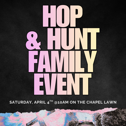 On Easter we will have photo opportunities for you and your family to enjoy. Join us earlier in the weekend for our Good Friday service or our family event, Hop & Hunt which will feature several activities including an Easter Egg Hunt, Kona Ice, and so much more.